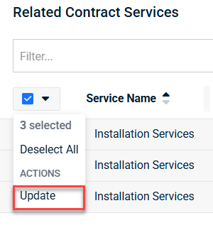 Click Update from the drop-down menu of the checkbox in the header of the table. The Update Services window opens.