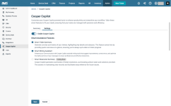 NOTE If you disable any of the above features, the technician will not be able to see the respective UI related to Cooper Copilot after that point of time, and the technician will not be able to use it as well. However, the text generated by Cooper Copilot earlier when it was enabled will stay.