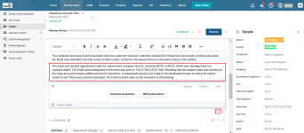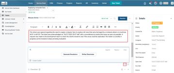 A technician can manually enter a summary, take the help of Smart Resolution Summary feature, ask Cooper Copilot to generate a modified and professional version of the summary and save it.