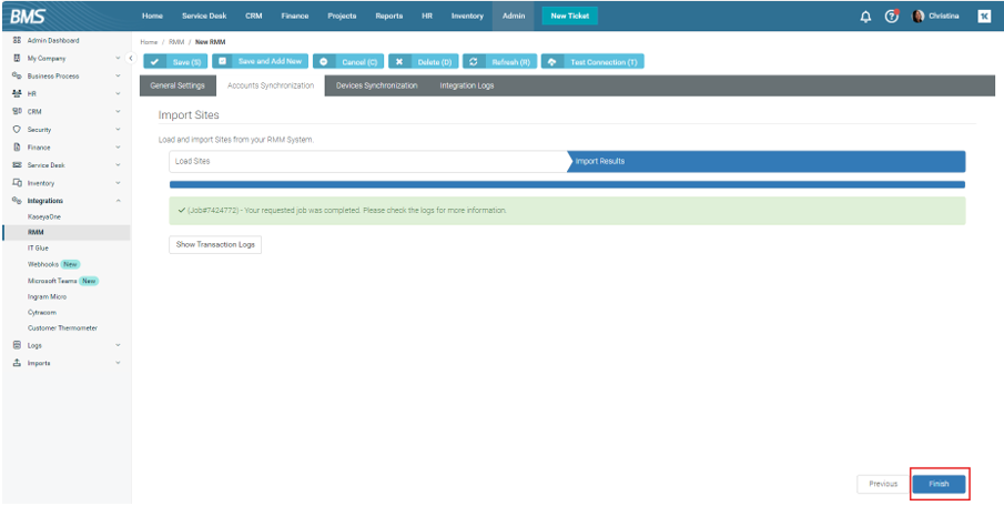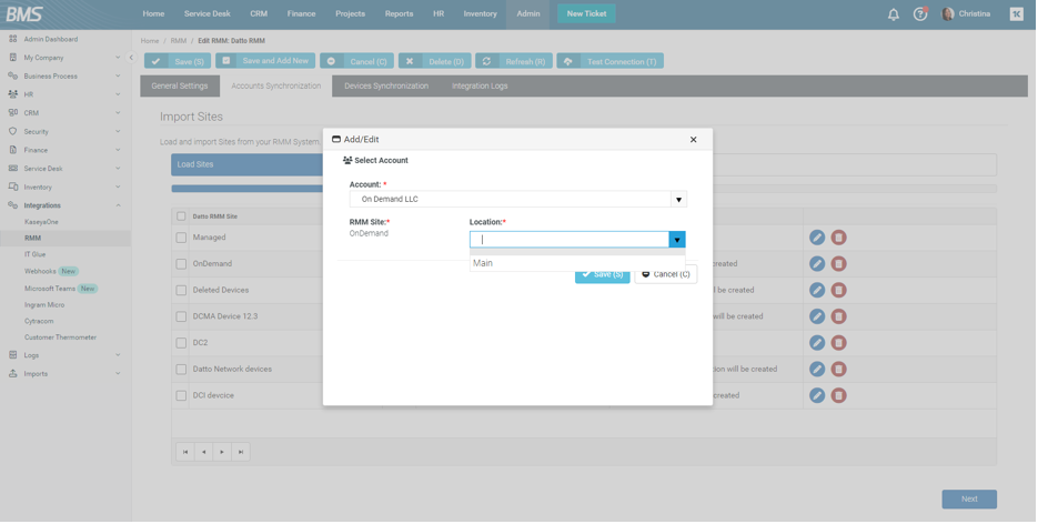 This functionality allows you to synchronize and map organizations between BMS and Datto RMM, ensuring consistent and up-to-date data across both platforms.