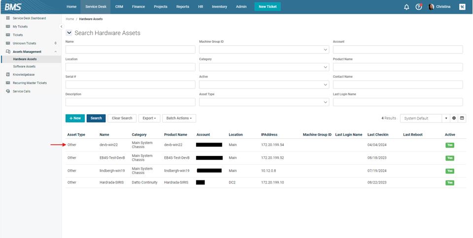 This functionality enables you to remotely access and manage affected hardware devices directly from within BMS, enhancing your remote support capabilities. You can access this functionality from a Service Desk ticket or Hardware Assets section.