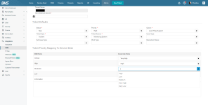 Ticket Priority Mapping to Service Desk: Select the priority for each field according to your choice. Settings in the Ticket Priority Mapping to Service Desk section will override the priority set in Ticket Defaults section if there are conflicts.