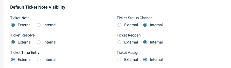 In Admin > Service Desk > Ticket Configuration page, partners can now set the default visibility of notes (i.e. external or internal). This applies to both the New and Legacy Views.