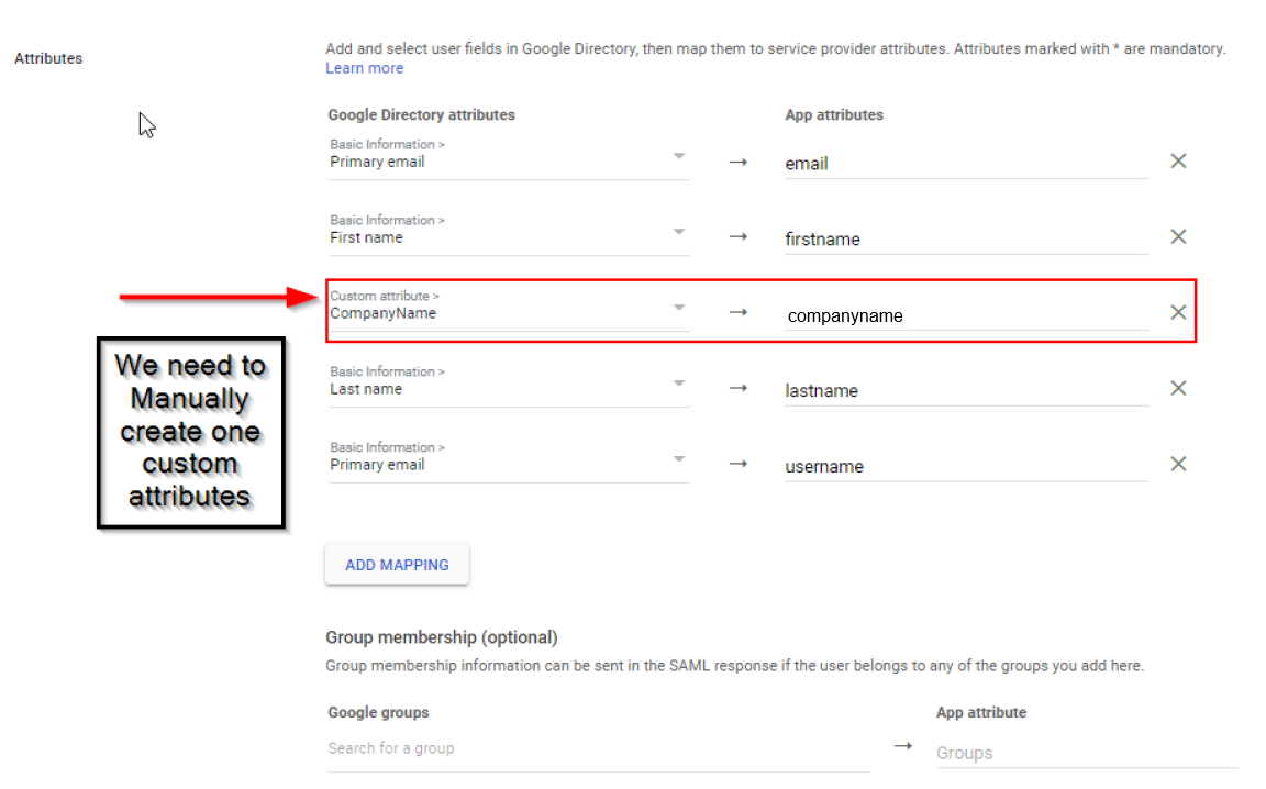 - Navigate to Apps and click SAML attributes mapping.