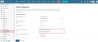 - After you have created a time sheet approval route, navigate to Admin > Service Desk > Ticket Configuration page.