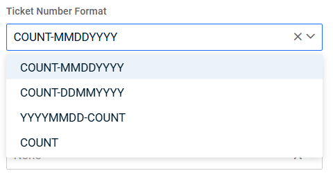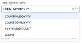 - Select the appropriate Ticket Number Format from the dropdown. There are four options to choose from.