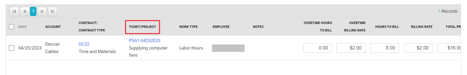 - Review the ticket or task for a billing entry by clicking the link in the Ticket/Project column.