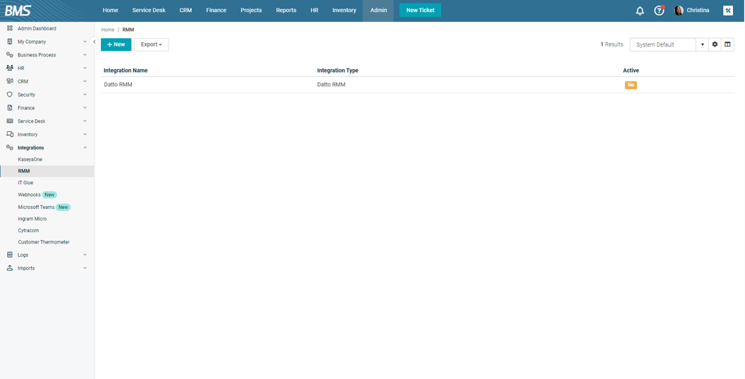 Navigate to Setup > Integrations > Kaseya BMS > Configuration section.