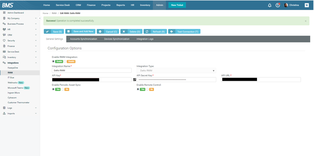 The integration between BMS and Datto RMM is designed to enhance your IT management capabilities, streamline your operations, and improve service delivery. By combining the power of BMS with Datto RMM, you can expect seamless synchronization of organizations and devices, efficient remote management, and a more cohesive IT environment. As we continue to enhance this integration, additional functionalities will be added to provide even greater value.