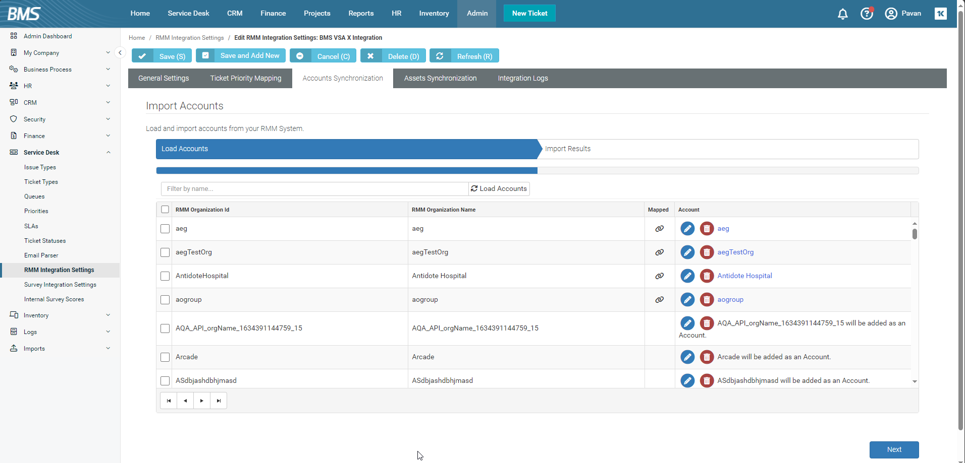 Go to BMS > Admin > Service Desk > RMM Integration Settings.
