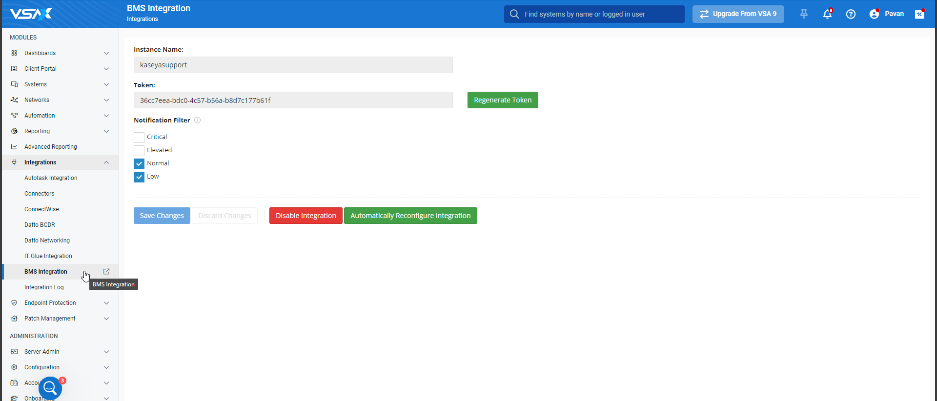 VSA 10 Token: Paste the token that you had copied from the VSA app > BMS Integration page earlier.