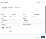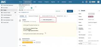 If technician A adds a note and if technician B is at a lower part of the ticket, a small popup message will appear for technician B and others that a new note is posted.
