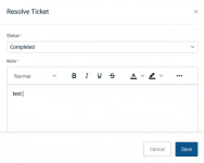 The above scenario holds good in the case of resolving a ticket or for in-line editing in the Details panel as well. If technician A clicks Resolve, technician B will see the same banner mentioned above.