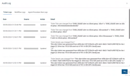 If technician B clicks Refresh And Show Log, technician B will see the Audit Log of the ticket which includes Date (when a certain change was made including the time), Source (the name of the technician or user who changed data), Action (for example, Updated), and Detail (the description of the change).